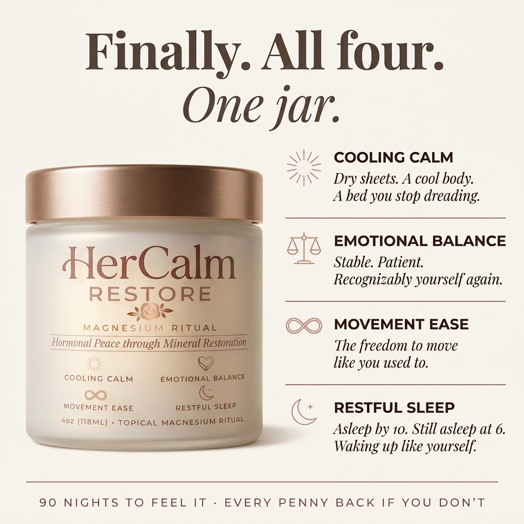 Not sadness exactly. Just a flatness I couldn't explain. I'd snap over nothing, apologize, and do it again the next day. My doctor said my levels were fine. I started HerCalm for the sleep. Two weeks in my husband said something at dinner and I actually laughed. I hadn't realized how long it had been since I did that.